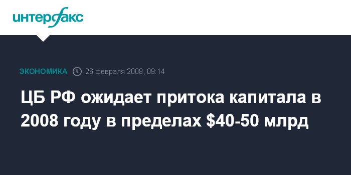 ЦБ РФ ожидает притока капитала в 2008 году в пределах $40-50 млрд