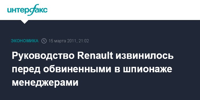 Париж. 15 марта. INTERFAX.RU - Руководство французского автомобилестроительного концерна Renault извинилось перед уволенными менеджерами, подозревавшимися в передаче технической информации Китаю - прокуратура не нашла доказательств их вины.