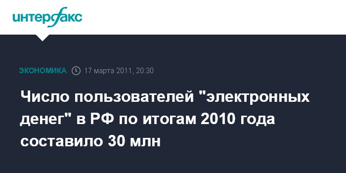 Число пользователей "электронных денег" в РФ по итогам 2010 года составило 30 млн