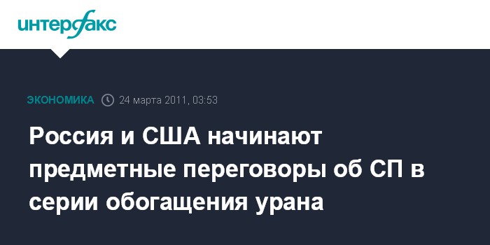 Вашингтон. 24 марта. ИНТЕРФАКС - Россия и США начинают предметные переговоры о совместном предприятии по строительству на территории США завода для обогащения урана по российской технологии.