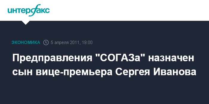 Предправления "СОГАЗа" назначен сын вице-премьера Сергея Иванова