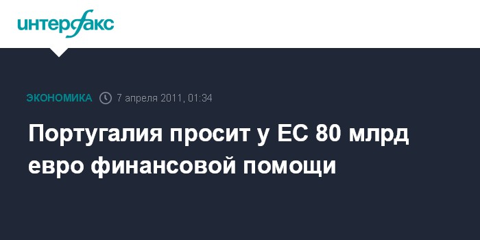 Португалия просит у ЕC 80 млрд евро финансовой помощи
