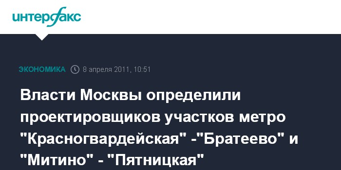 Власти Москвы определили проектировщиков участков метро "Красногвардейская" -"Братеево" и "Митино" - "Пятницкая"