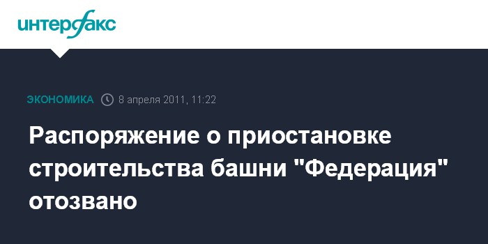 Распоряжение о приостановке строительства башни "Федерация" отозвано