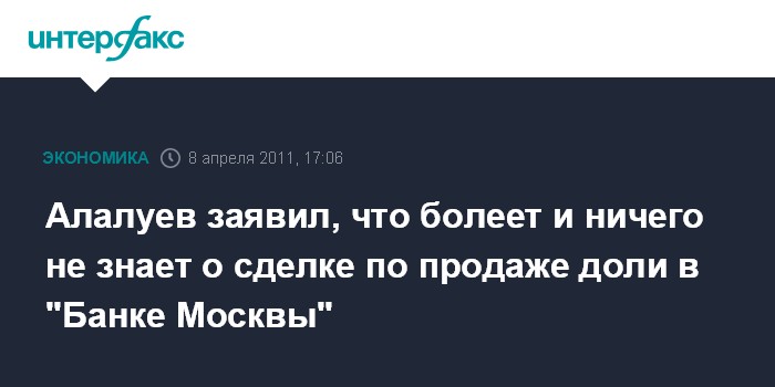 Алалуев заявил, что болеет и ничего не знает о сделке по продаже доли в "Банке Москвы"