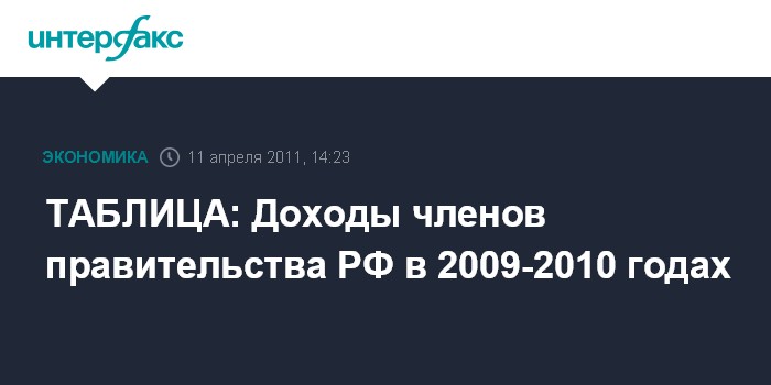 ТАБЛИЦА: Доходы членов правительства РФ в 2009-2010 годах