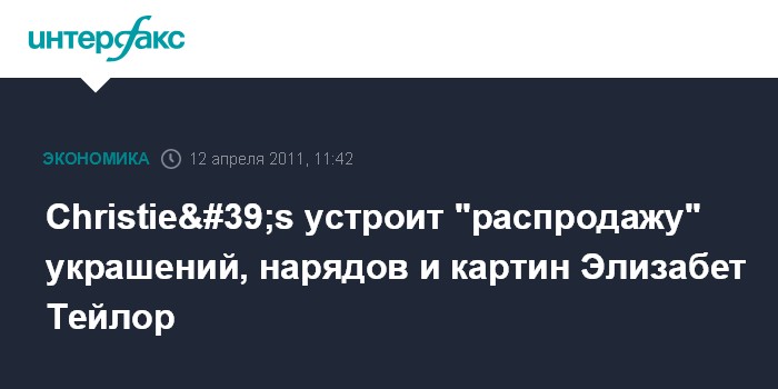 12 апреля. Москва. INTERFAX.RU - Аукционный дом Christie's выставит на торги ювелирные украшения Элизабет Тейлор.