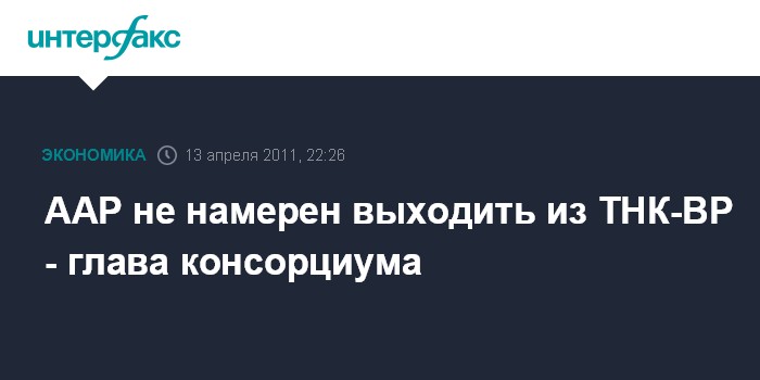 Москва. 13 апреля. ИНТЕРФАКС-АНИ - Российский консорциум "Альфа-Акссес-Ренова" (ААР) не намерен выходить из ТНК-ВР и продавать свою долю в нефтяной копании, которой ААР на паритетных началах владеет с британской ВР.