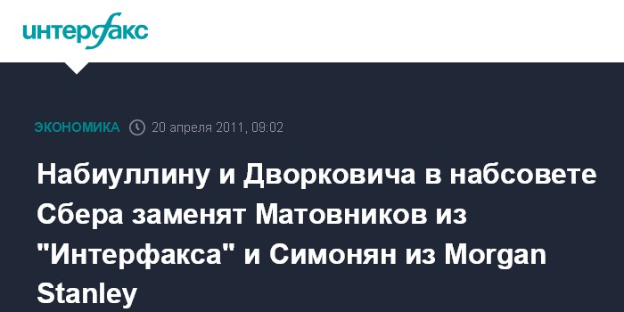 Набиуллину и Дворковича в набсовете Сбера заменят Матовников из "Интерфакса" и Симонян из Morgan Stanley