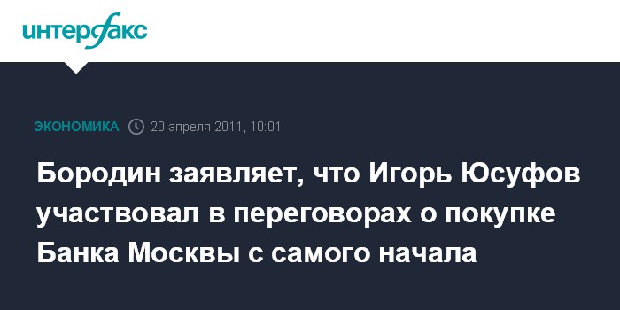 Бородин заявляет, что Игорь Юсуфов участвовал в переговорах о покупке Банка Москвы с самого начала