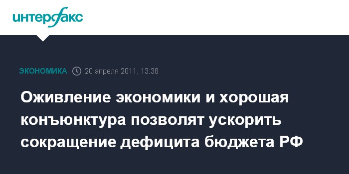 "Оживление экономики, благоприятная конъюнктура дают нам возможность серьезно ускорить решение проблемы дефицита бюджета", - сказал он, выступая с отчетом о результатах работы правительства РФ в 2010 году в Госдуме.