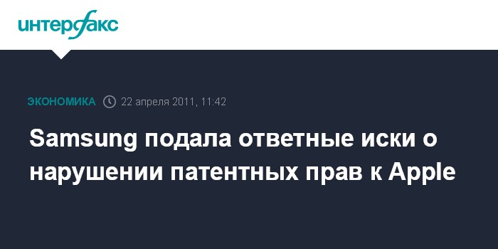 Сеул. 22 апреля. INTERFAX.RU - Южнокорейская Samsung Electronics Co. объявила в пятницу о подаче исковых заявлений к американской компании Apple в суды Сеула, Токио и германского Мангейма, обвинив производителя iPhone и iPad в нарушении 10 своих патентов.