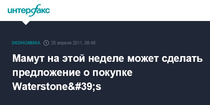 Мамут на этой неделе может сделать предложение о покупке Waterstone's