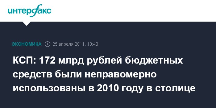 КСП: 172 млрд рублей бюджетных средств были неправомерно использованы в 2010 году в столице