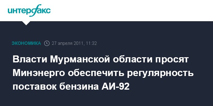 Власти Мурманской области просят Минэнерго обеспечить регулярность поставок бензина АИ-92