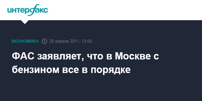 Москва. 28 апреля. INTERFAX.RU - ФАС не отмечает в Москве проблем с топливом, заявил "Интерфаксу" руководитель московского управления службы Владимир Ефимов в четверг.