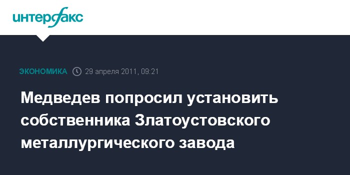 Москва. 29 апреля. ИНТЕРФАКС - Президент РФ Дмитрий Медведев заинтересовался структурой собственности Златоустовского металлургического завода, ранее входившего в группу бизнесмена Вадима Варшавского "Эстар".