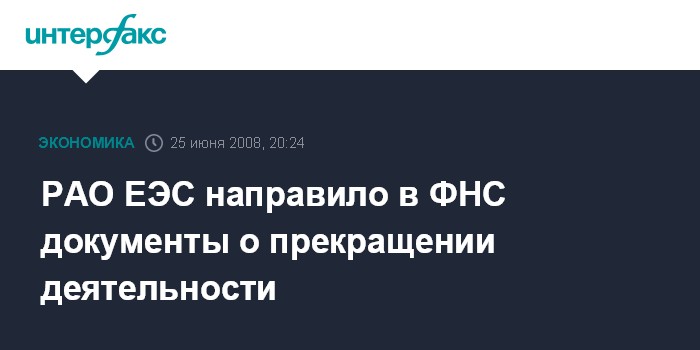 РАО ЕЭС направило в ФНС документы о прекращении деятельности