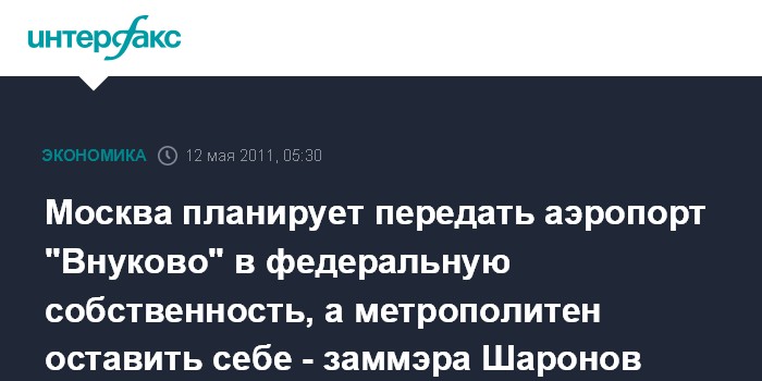 Москва планирует передать аэропорт "Внуково" в федеральную собственность, а метрополитен оставить себе - заммэра Шаронов