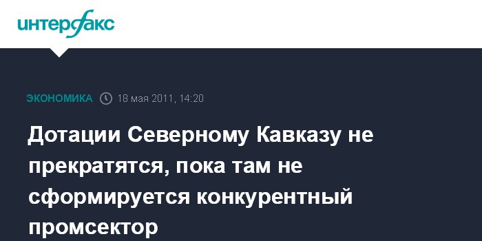 Сколково. 18 мая. INTERFAX.RU - Президент РФ Дмитрий Медведев заявил, что дотирование Северного Кавказа сохранится до тех пор, пока в регионе не заработает конкурентная среда.