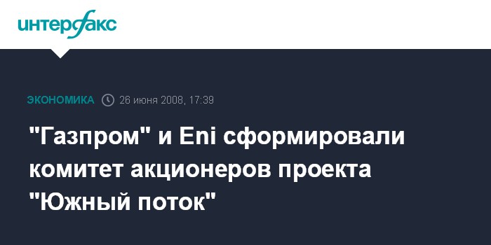 Москва. 26 июня. ИНТЕРФАКС-АГИ - Российский "Газпром" и итальянская Eni сформировали комитет акционеров швейцарской проектной компании South Stream AG (принадлежит партнерам на паритетных началах) в составе 6 человек.
