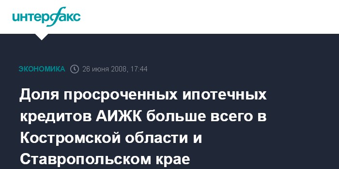 Доля просроченных ипотечных кредитов АИЖК больше всего в Костромской области и Ставропольском крае