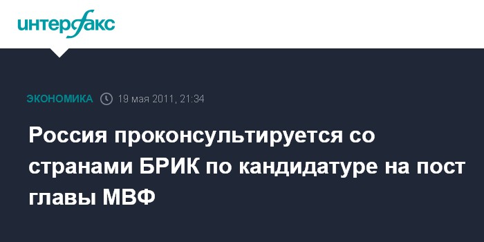 Россия проконсультируется со странами БРИК по кандидатуре на пост главы МВФ