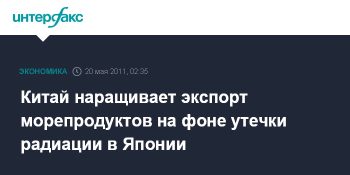 По итогам первого квартала 2011 года Китай экспортировал более 905 тыс. тонн морепродуктов на сумму $3,61 млрд, что на 35% превысило показатель аналогичного периода 2010 года.