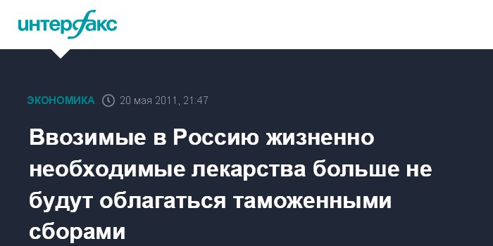 Ввозимые в Россию жизненно необходимые лекарства больше не будут облагаться таможенными сборами