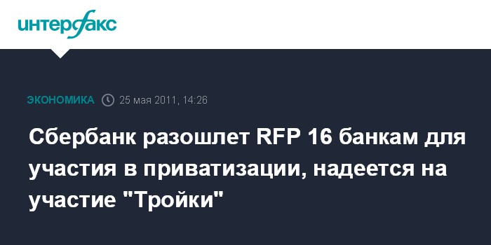Сбербанк разошлет RFP 16 банкам для участия в приватизации, надеется на участие "Тройки"