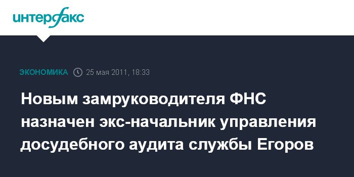 Новым замруководителя ФНС назначен экс-начальник управления досудебного аудита службы Егоров
