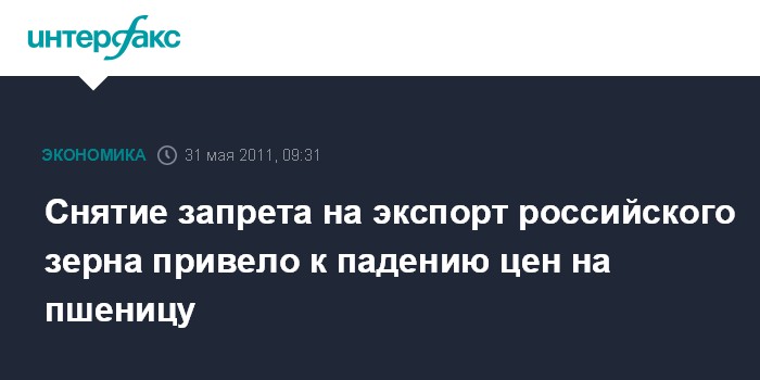 Запрет на экспорт зерна из РФ был введен 15 августа 2010 года на период до 31 декабря 2010 года, затем он был продлен до 1 июля 2011 года. Россия запретила экспорт зерна в связи с тем, что в 2010 году из-за небывалой засухи был получен крайне низкий урожай зерна - 60,9 млн тонн.