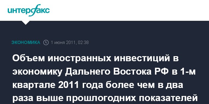 Объем иностранных инвестиций в экономику Дальнего Востока РФ в 1-м квартале 2011 года более чем в два раза выше прошлогодних показателей