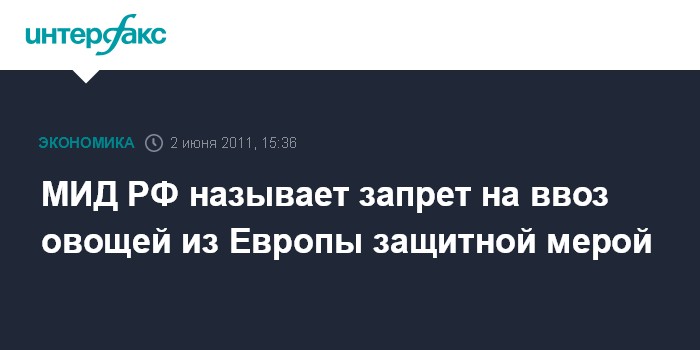 Москва. 2 июня. INTERFAX.RU - Запрет на ввоз овощей из стран Евросоюза в РФ направлен на защиту российского рынка, заявил официальный представитель МИД РФ Александр Лукашевич.