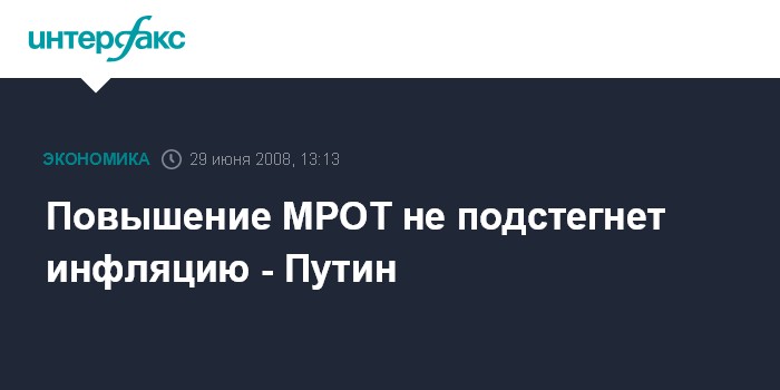 "Лесные дали" (Подмосковье). 29 июня. ИНТЕРФАКС - Повышение МРОТ до 4430 рублей не окажет существенного влияния на инфляцию в стране, заявил премьер-министр РФ Владимир Путин.