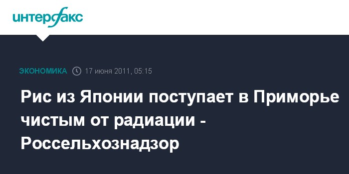 "Из Японии в мае было поставлено 14,4 тонны риса. Лабораторные испытания показали, что радиоактивных веществ в поставленном рисе нет", - сообщил в пятницу агентству "Интерфакс - Дальний Восток" помощник руководителя Россельхознадзора в Приморье Виталий Саленко.