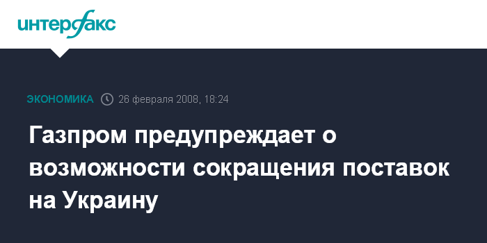 Газпром предупреждает о возможности сокращения поставок на Украину