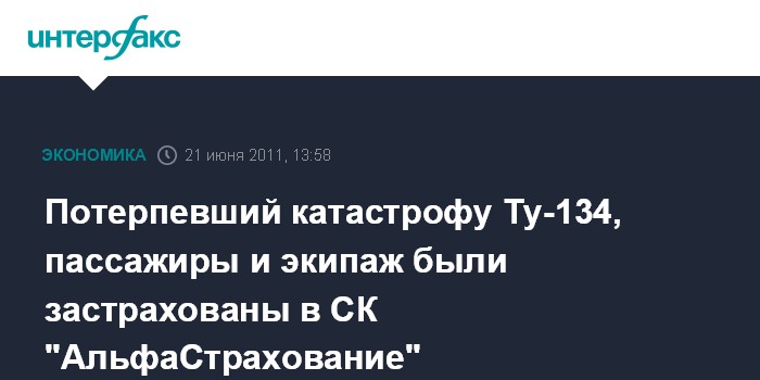 Потерпевший катастрофу Ту-134, пассажиры и экипаж были застрахованы в СК "АльфаСтрахование"