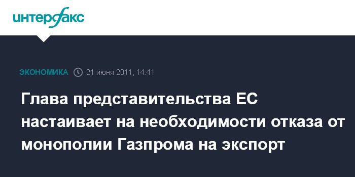 Глава представительства ЕС настаивает на необходимости отказа от монополии Газпрома на экспорт