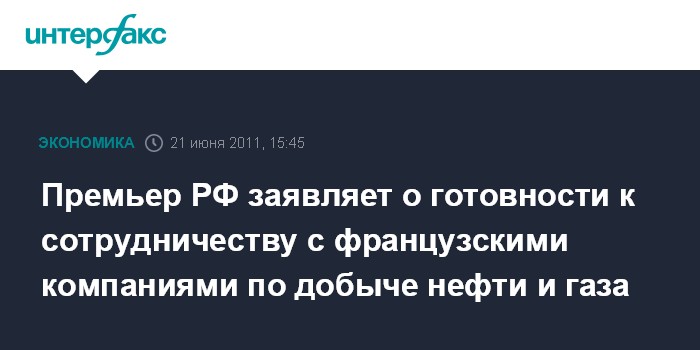 Премьер РФ заявляет о готовности к сотрудничеству с французскими компаниями по добыче нефти и газа