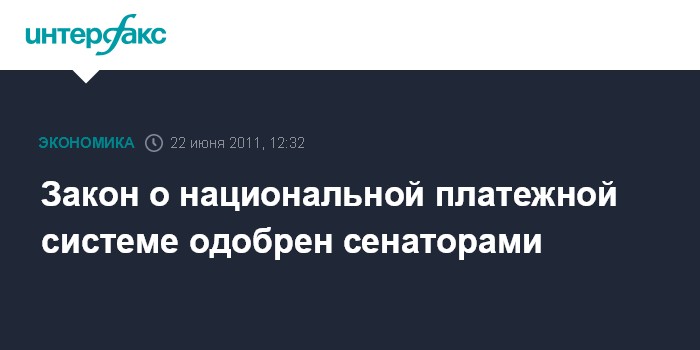 Москва. 22 июня. INTERFAX.RU - Совет Федерации одобрил закон "О национальной платежной системе".