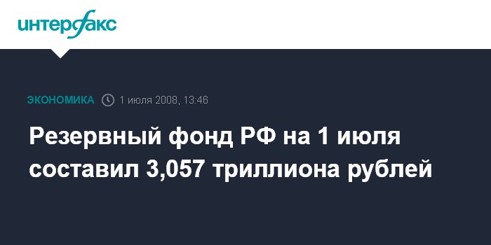 Резервный фонд РФ на 1 июля составил 3,057 триллиона рублей