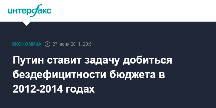Ново-Огарево.27 июня. INTERFAX.RU - Премьер-министр РФ Владимир Путин ставит задачу предпринять все усилия для того, чтобы в плановый период 2012-2014 годов бюджет стал бездефицитным.