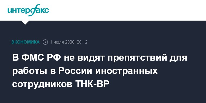 В ФМС РФ не видят препятствий для работы в России иностранных сотрудников ТНК-BP