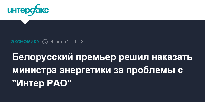 Белорусский премьер решил наказать министра энергетики за проблемы с "Интер РАО"