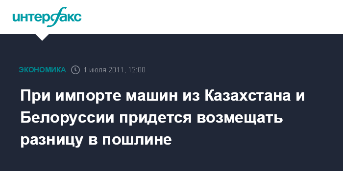 Он напомнил, что ранее страны Таможенного союза выровняли ставки импортных пошлин на автомобили, ввезенные юридическими лицами, но ставки пошлин на ввоз физическими лицами в Белоруссии и Казахстане до 1 июля были льготными. В связи с чем возникла опасность, что при открытии границ машины, ввезенные за это время в страны Таможсоюза по пониженным ставкам, могут оказаться в РФ.