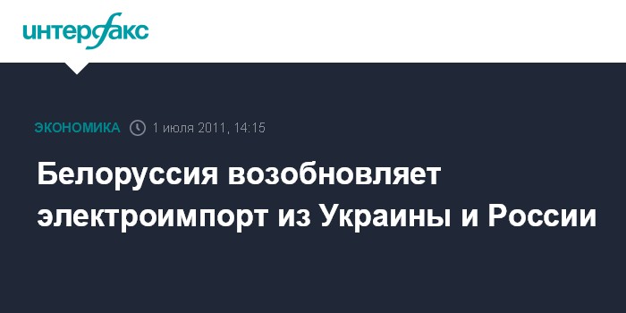 Минск. 1 июля. INTERFAX.RU - Белоруссия в пятницу возобновит импорт электроэнергии из Украины, поставки из России возобновятся, самое позднее, до конца субботы, заявил первый вице-премьер Белоруссии Владимир Семашко.