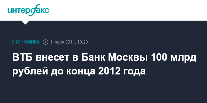 ВТБ внесет в Банк Москвы 100 млрд рублей до конца 2012 года