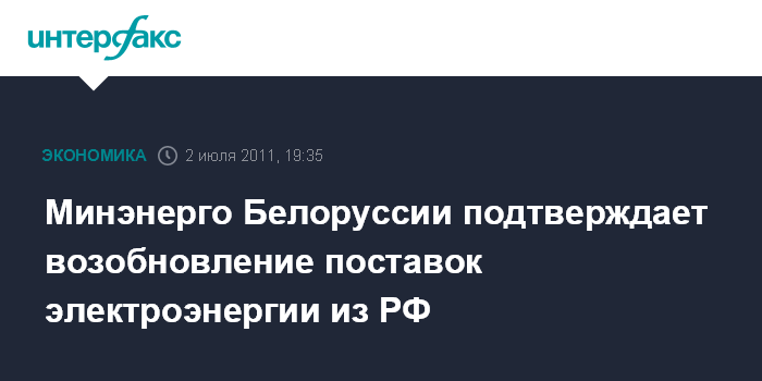 Минэнерго Белоруссии подтверждает возобновление поставок электроэнергии из РФ