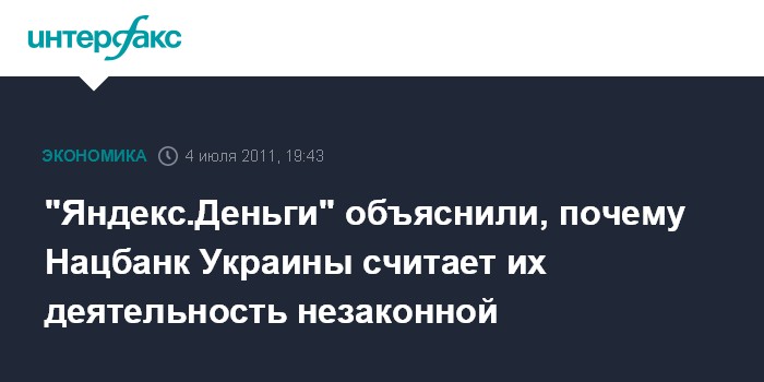Сообщения о том, что "Яндекс.Деньги" работают на Украине незаконно появились в прессе 1 июля.